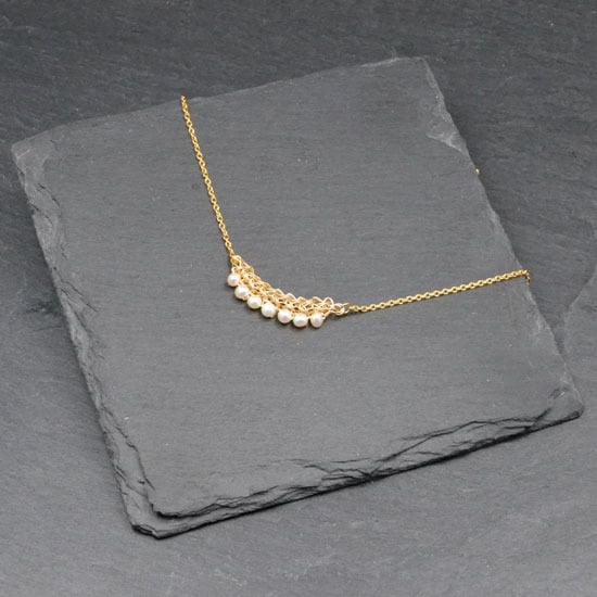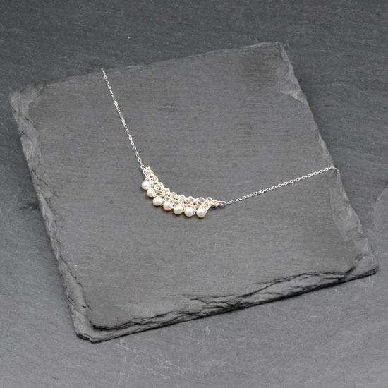エビコード編みの技法を使ったアクセサリーでエレガントな仕上がりになっています。