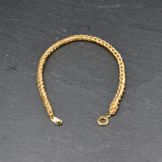 エビコード編みの技法を使ったアクセサリーでエレガントな仕上がりになっています。